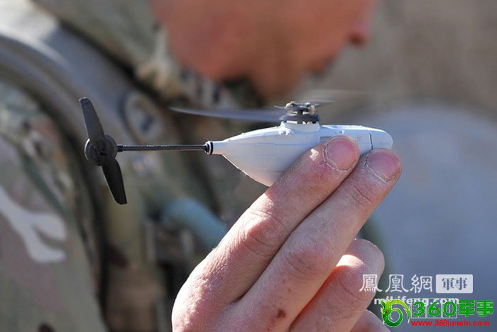 近日,驻阿富汗英军部队首次使用了世界最先进的“黑色大黄蜂”微型遥控无人侦察机。“黑色大黄蜂”微型无人侦察机的尺寸大约为10cm*2.5cm,可以为地面部队提供重要的战场情报。该款无人机装备了一部微型摄像头,可以为作战部队提供动态图像或是静态照片。士兵可以使用其对街角、围墙或是其他障碍物进行侦察,以预知这些视觉死角后方潜在的危险。这些图像资料将会在一部手持终端机上呈现。